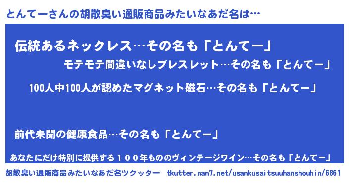 | 男性向けラノベタイトル風あだ名 | 『緋弾のトンテー』『トンテースレイヤー』 |