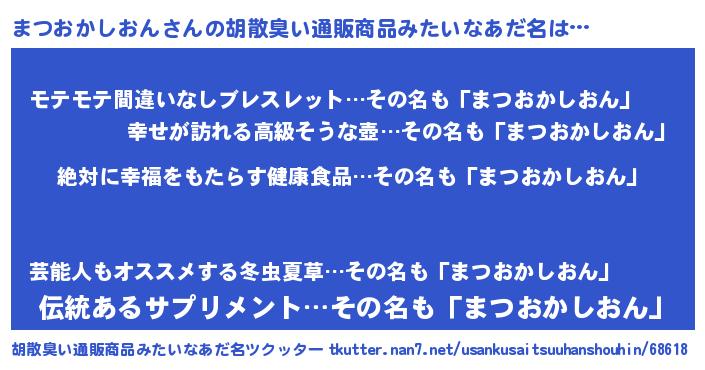 | ヘコむあだ名 | 『まつおかしおん(笑)』『まつにー』 |