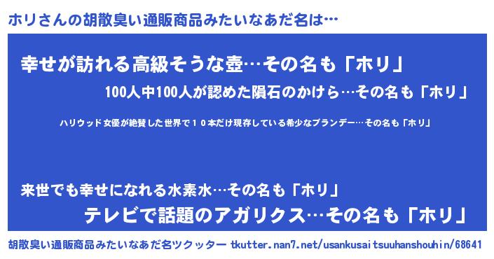 | ヘコむあだ名 | 『つくし』『ホリ(笑)』『ホリっ子』 |