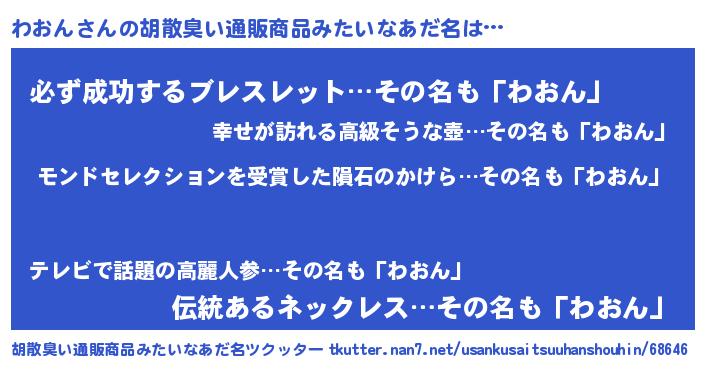 | ヘコむあだ名 | 『わおっふぃ~』『わおを』 |