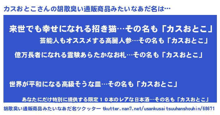| ヘコむあだ名 | 『カスっふぃ~』『カスおとこ(笑)』 |