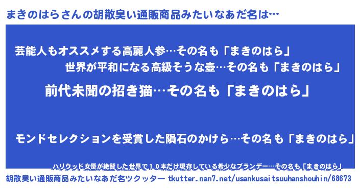 | 意味不明あだ名 | 『永久保存まきのはら』『自称まきのはら』 |