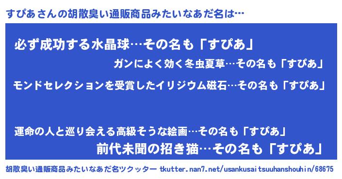 | ヘコむあだ名 | 『すぴにゅー』『すぴあ(笑)』 |