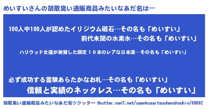 | 意味不明あだ名 | 『住所不定無職めいすい(47歳)』 |