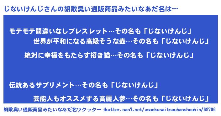 | ヘコむあだ名 | 『じないけんじ(笑)』『じなにゅー』 |