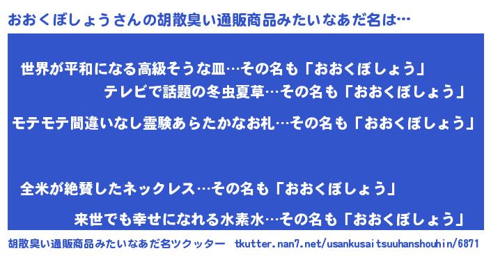 | 欧米人風あだ名 | 『アンジェラ・おおくぼしょう』 |