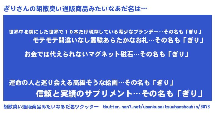 | ヒーロー風カッコイイあだ名 | 『慈愛の使者ぎり』『仮面ギリダー』 |