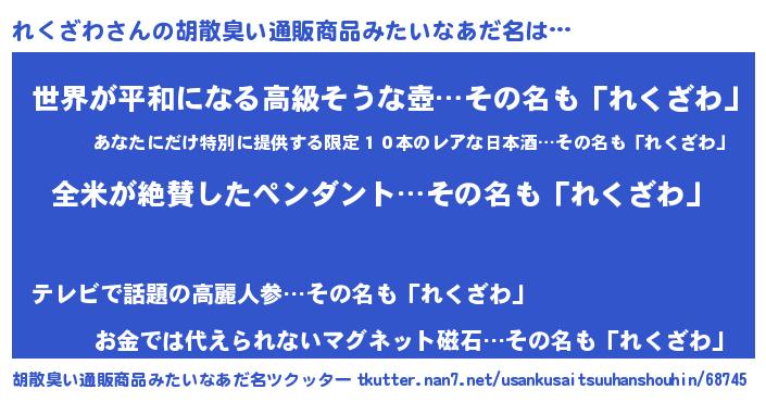 | 意味不明あだ名 | 『とにかく怪しいれくざわ』 |