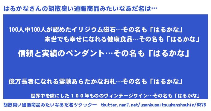 | 男性向けラノベタイトル風あだ名 | 『ハルカナスレイヤー』 |