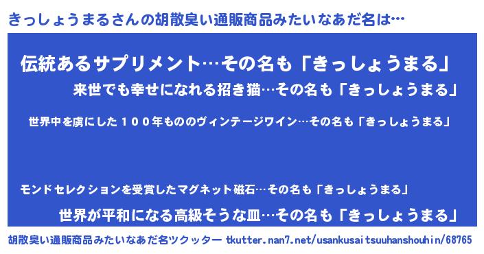 | 意味不明あだ名 | 『住所不定無職きっしょうまる(6歳)』 |