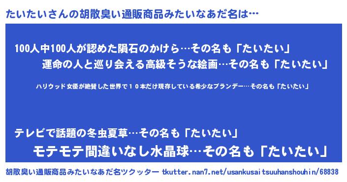 | ヘコむあだ名 | 『たいもー』『牛乳』『たいを』 |