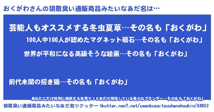 | ヘコむあだ名 | 『なまこ酢』『おくがわ(小並感)』 |