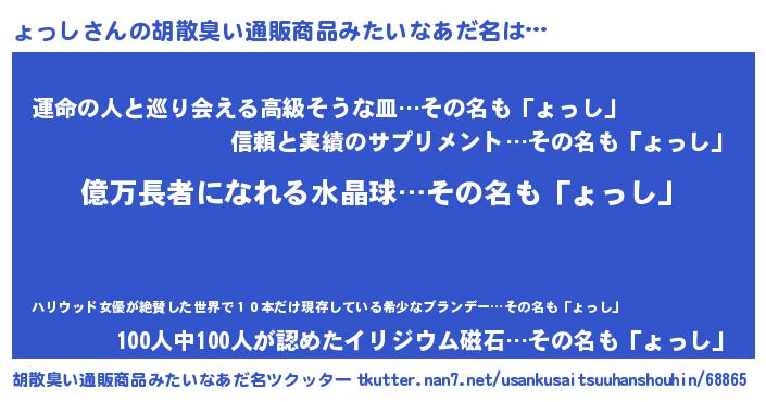 | 意味不明あだ名 | 『ペロリンょっし』『ょっしフォーエバー』 |