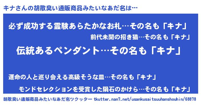 | 意味不明あだ名 | 『とにかく怪しいキナ』『ペロリンキナ』 |