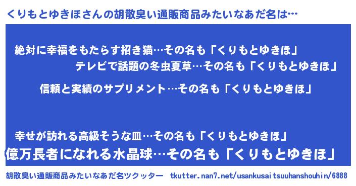 | 意味不明あだ名 | 『とにかく怪しいくりもとゆきほ』 |