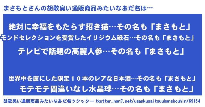 | 意味不明あだ名 | 『自称まさもと』『永久保存まさもと』 |