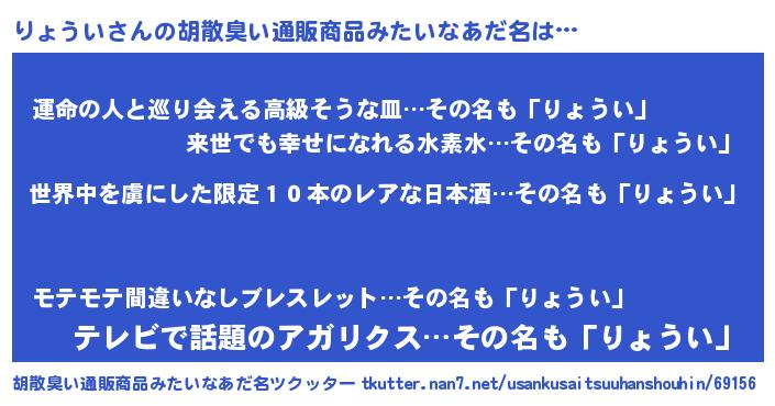 | 男性向けラノベタイトル風あだ名 | 『この素晴らしい世界にりょういを!』 |