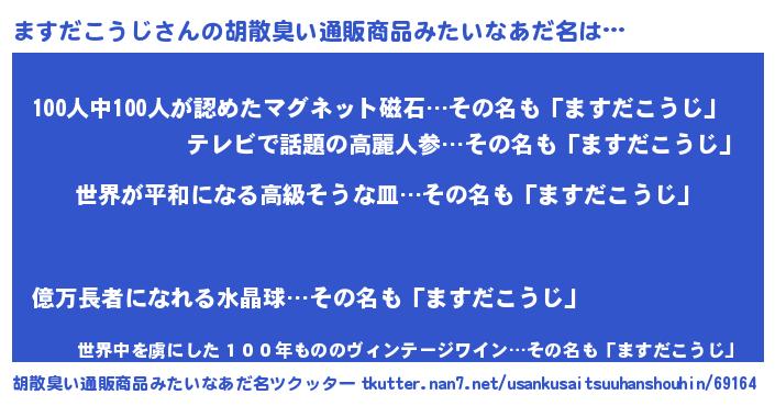 | 肩書あだ名 | 『ますだこうじ機長』『ますだこうじ教授』 |