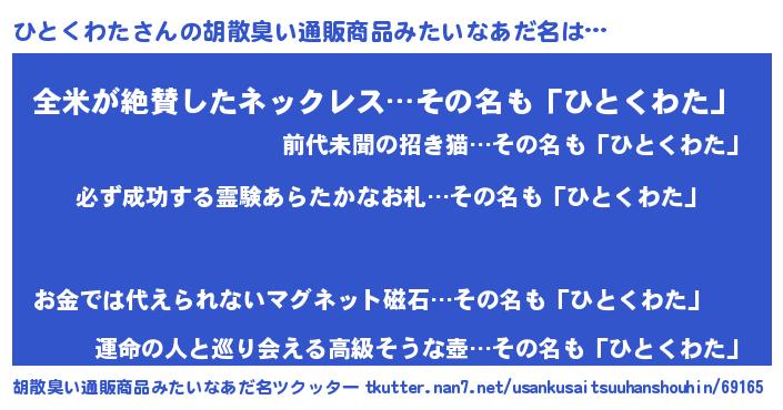 | 伝説のあだ名 | 『伝説のスナイパーひとくわた』 |