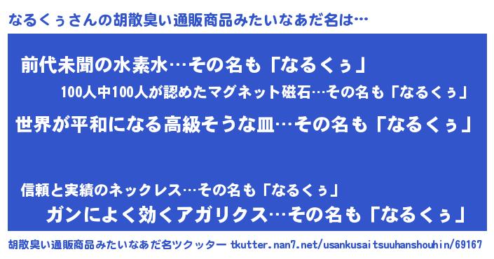| ヘコむあだ名 | 『なまこ酢』『なるくぅ(笑)』 |