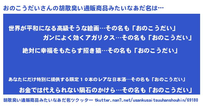 | 意味不明あだ名 | 『永久保存おのこうだい』 |