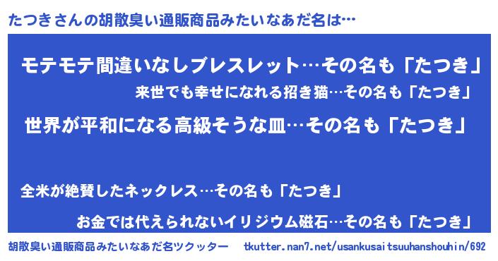 | ヘコむあだ名 | 『豆乳』『たつにゅー』『たつき(笑)』 |