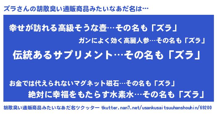 | 意味不明あだ名 | 『とにかく怪しいズラ』『永久保存ズラ』 |