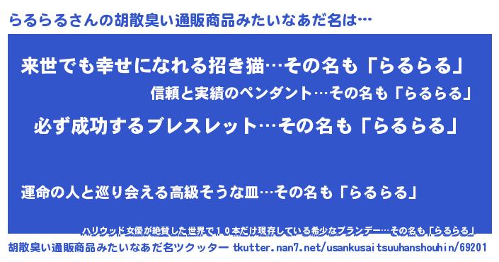 | ヘコむあだ名 | 『らるふぇ~』『らるらる(笑)』 |