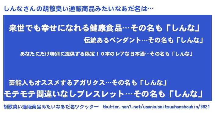 | ヘコむあだ名 | 『しんな(笑)』『しんっふぃ~』 |