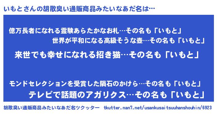 | 意味不明あだ名 | 『なめこ科いもと属』『永久保存いもと』 |