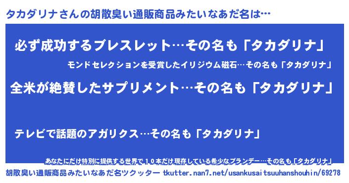 | 意味不明あだ名 | 『とにかく怪しいタカダリナ』 |