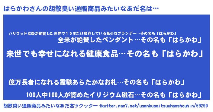 | 意味不明あだ名 | 『永久保存はらかわ』『ペロリンはらかわ』 |