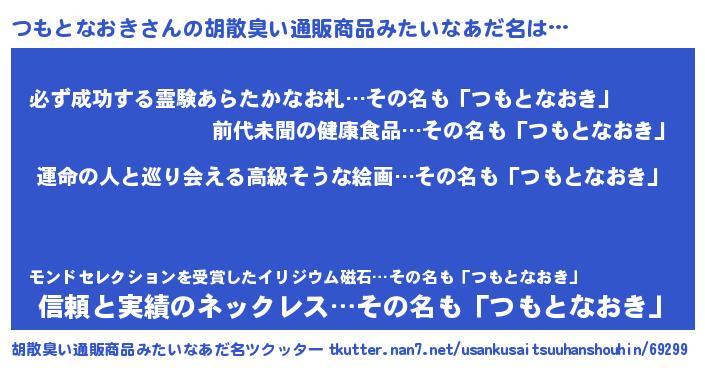 | 恥ずかしいあだ名 | 『つもっちょ』『プリティーつもとなおき』 |