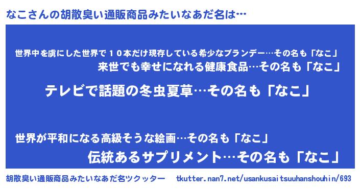 | 意味不明あだ名 | 『自称なこ』『住所不定無職なこ(91歳)』 |