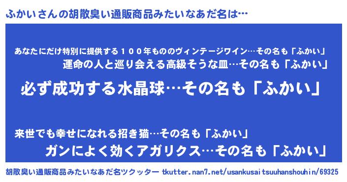 | 意味不明あだ名 | 『ペロリンふかい』『自称ふかい』 |