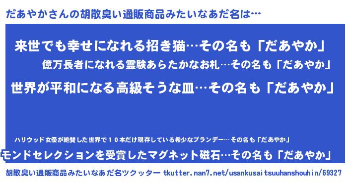 | 意味不明あだ名 | 『だあやかフォーエバー』 |