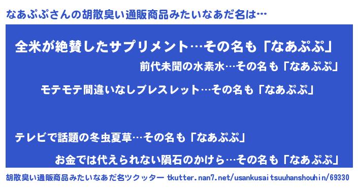 | 欧米人風あだ名 | 『マイケルなあぷぷ』『ウサインなあぷぷ』 |