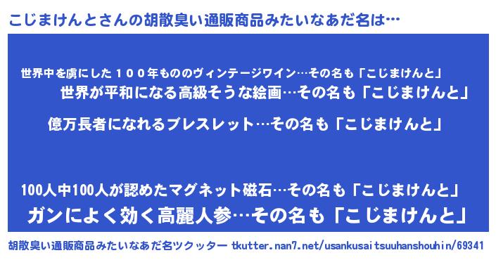 | 男性向けラノベタイトル風あだ名 | 『コジマケントアートオンライン』 |