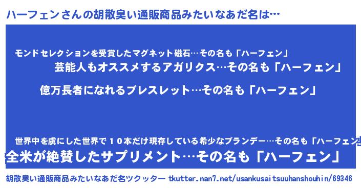 | 意味不明あだ名 | 『ペロリンハーフェン』『自称ハーフェン』 |