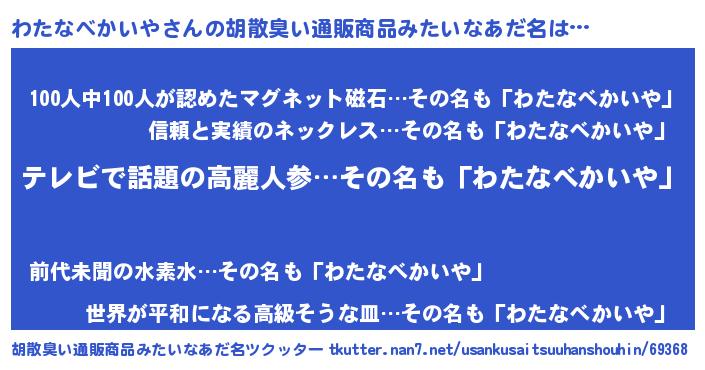 | 意味不明あだ名 | 『自称わたなべかいや』 |