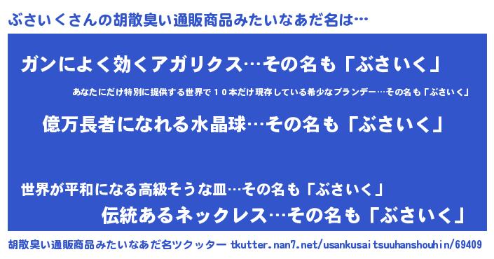 | ヘコむあだ名 | 『ぶさもー』『ぶさっぺ』『なまこ酢』 |