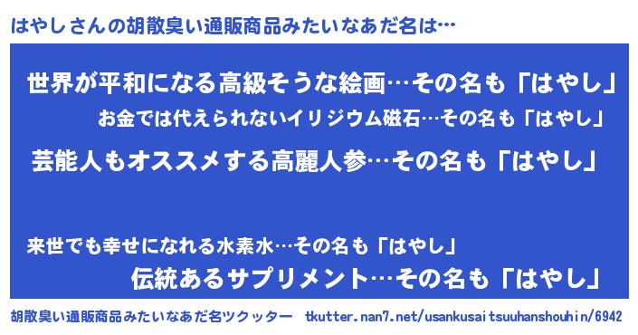 | 肩書あだ名 | 『はやし閣下』『はやし総理大臣』 |
