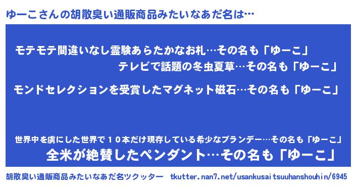| ヒーロー風カッコイイあだ名 | 『天空の使者ゆーこ』『スーパーユーコ』 |
