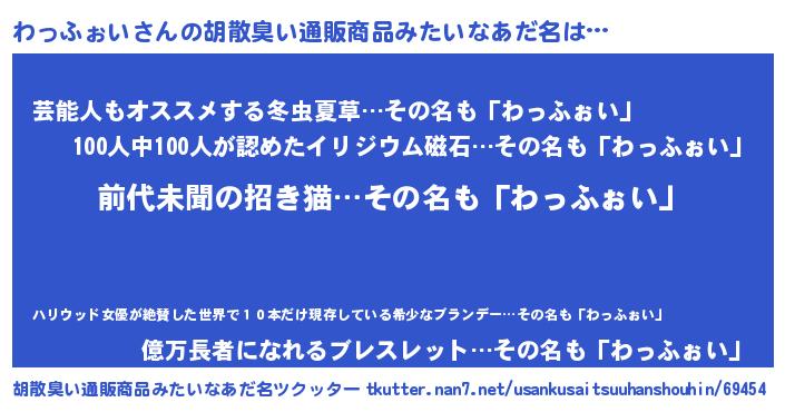 | ヘコむあだ名 | 『わっふぉい(笑)』『わっにゅー』 |