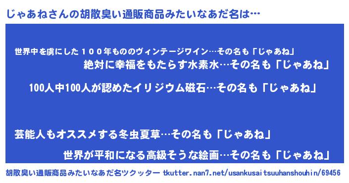 | 男性向けラノベタイトル風あだ名 | 『おまえをオタクにしてやるから、俺をじゃあねにしてくれ! 』 |