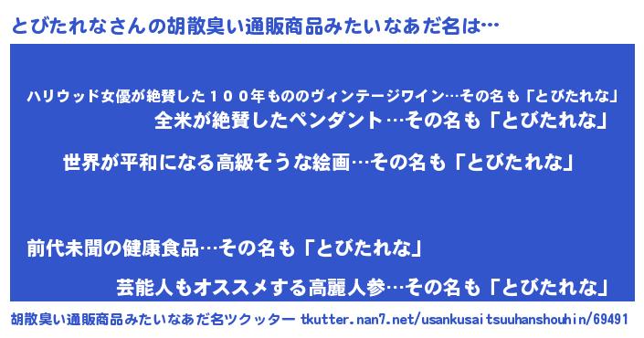 | ヘコむあだ名 | 『なまこ酢』『とびっぺ』 |