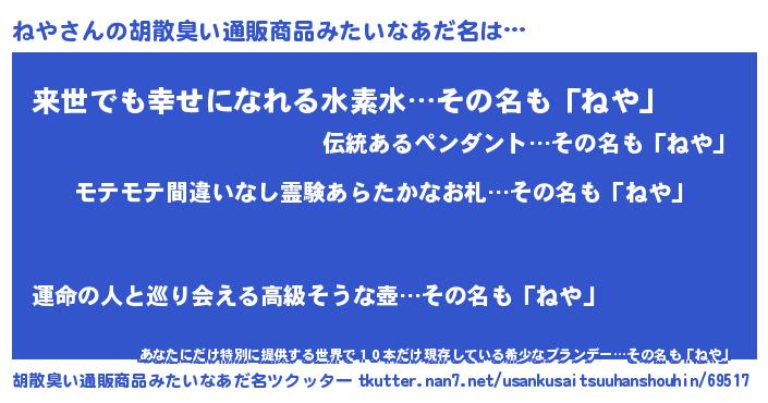 | ヘコむあだ名 | 『ねやもー』『ねや(苦笑)』 |