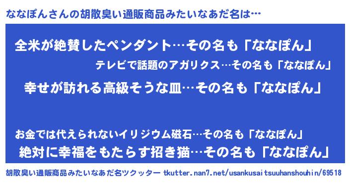| 意味不明あだ名 | 『ななぽんフォーエバー』『自称ななぽん』 |