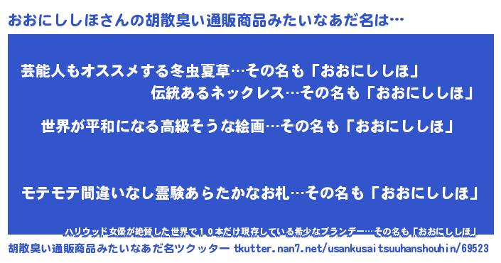 | 肩書あだ名 | 『おおにししほ船長』『おおにししほ総統』 |