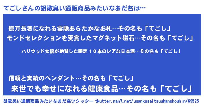 | 意味不明あだ名 | 『住所不定無職てごし(59歳)』 |